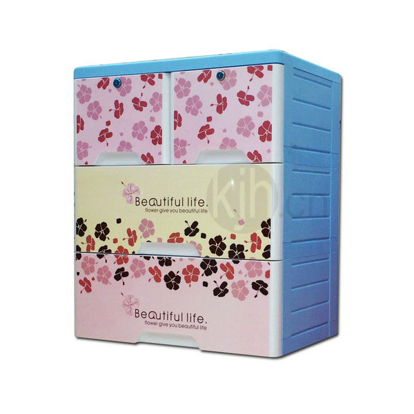 三層整理柜-帶鎖(富貴色彩花)