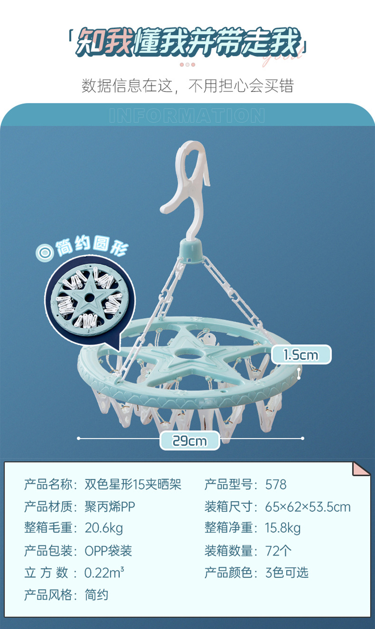 雙色星形15夾曬架 2023年新色
