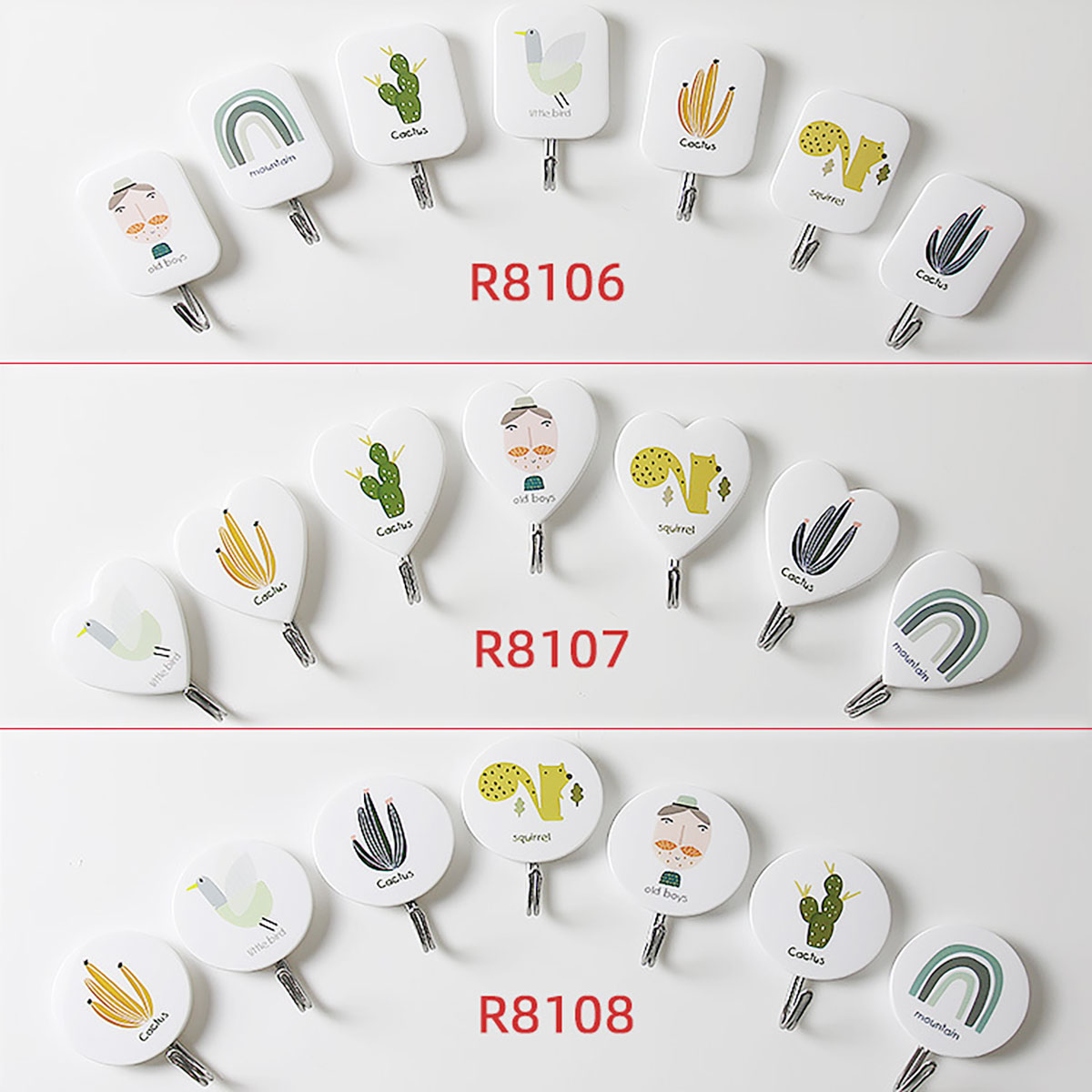 Remarks:白色底,共七個圖案隨機(jī)搭配包裝,共三個型號:長方形,心形,圓形