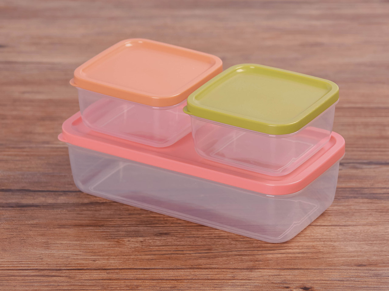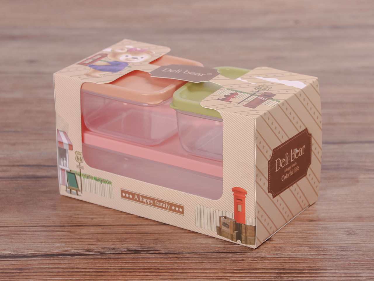 得力熊長方3件套疊疊保鮮盒(混色)