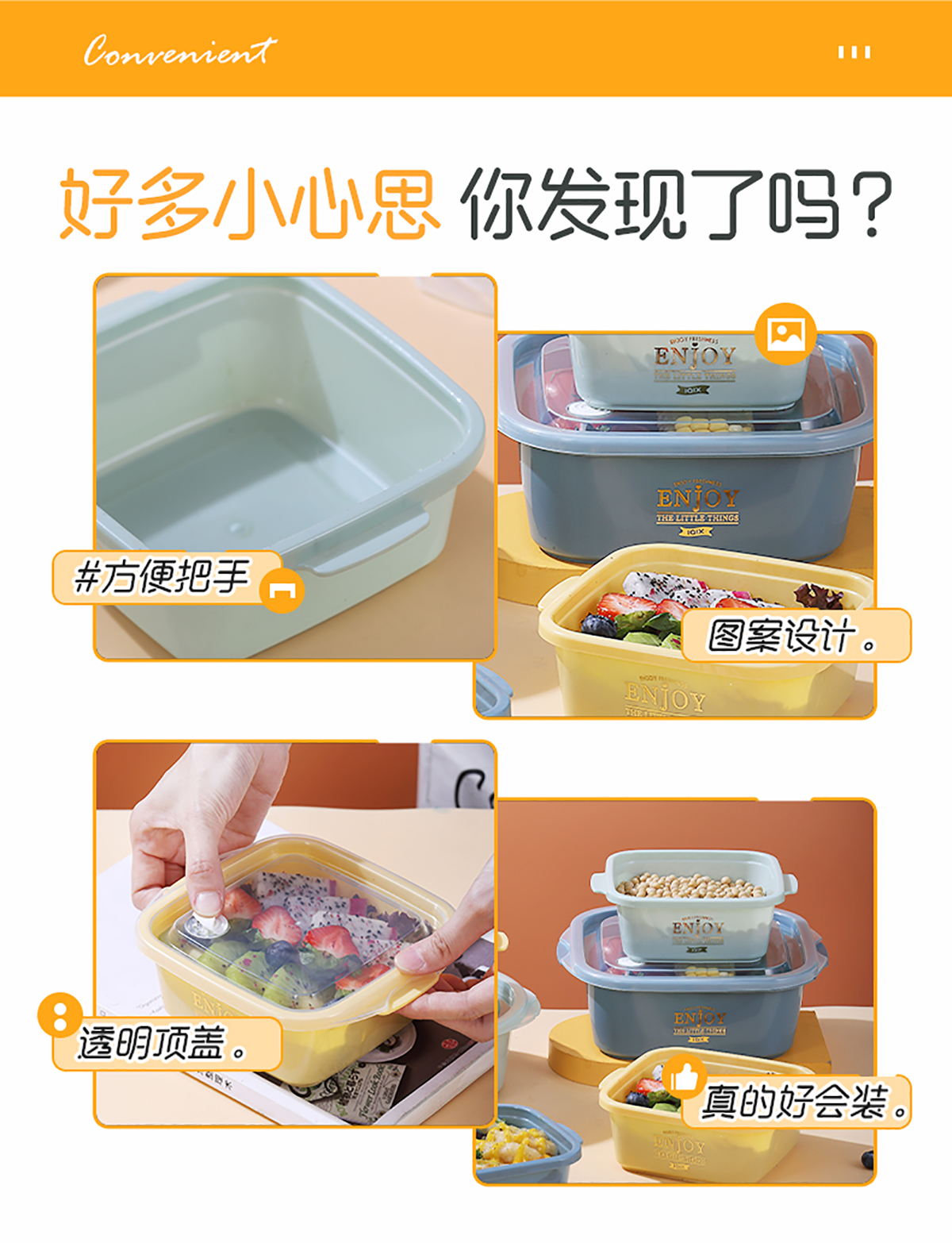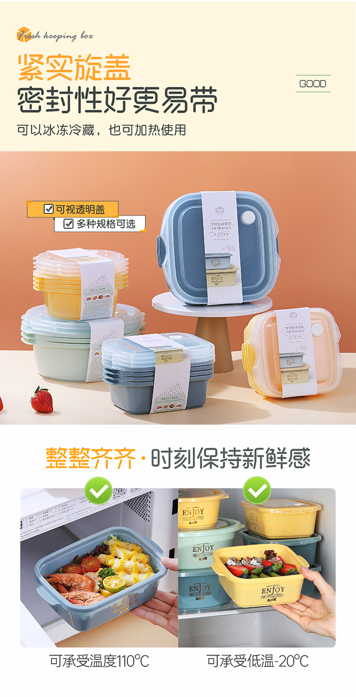 方形輕便微波保鮮盒(小/大)(4個(gè)裝/3個(gè)莊)500ml/1300ml 2022新色