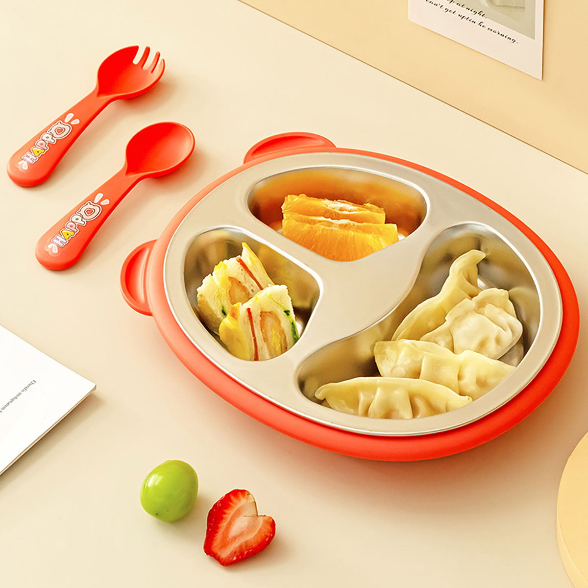 Size: 餐盤245*200*45mm/碗160*110*80mm/杯140*80*83mm/勺叉125mm