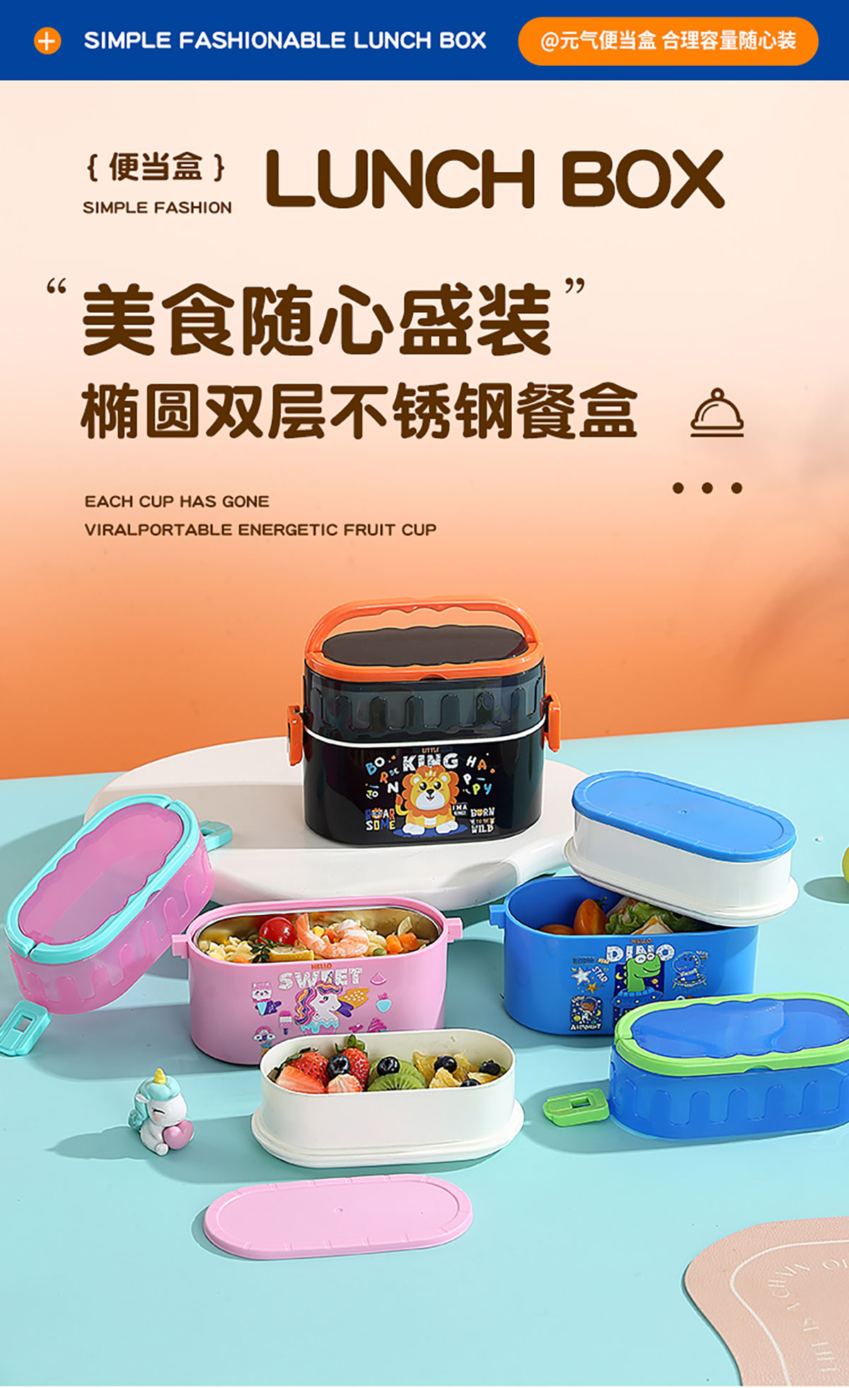 橢圓不銹鋼雙層餐盒950ml