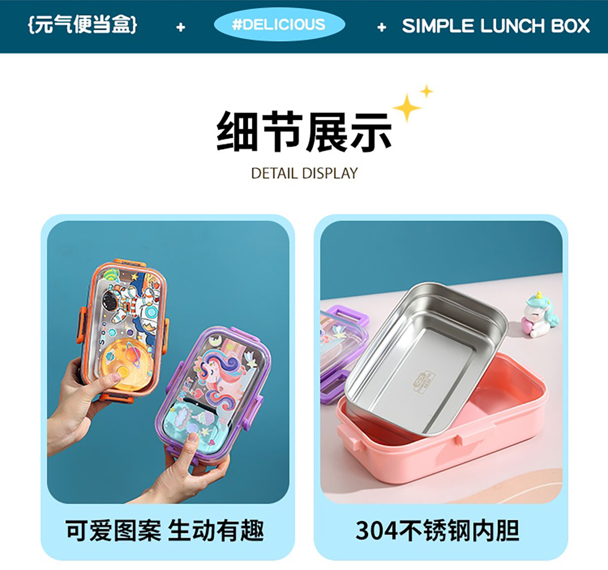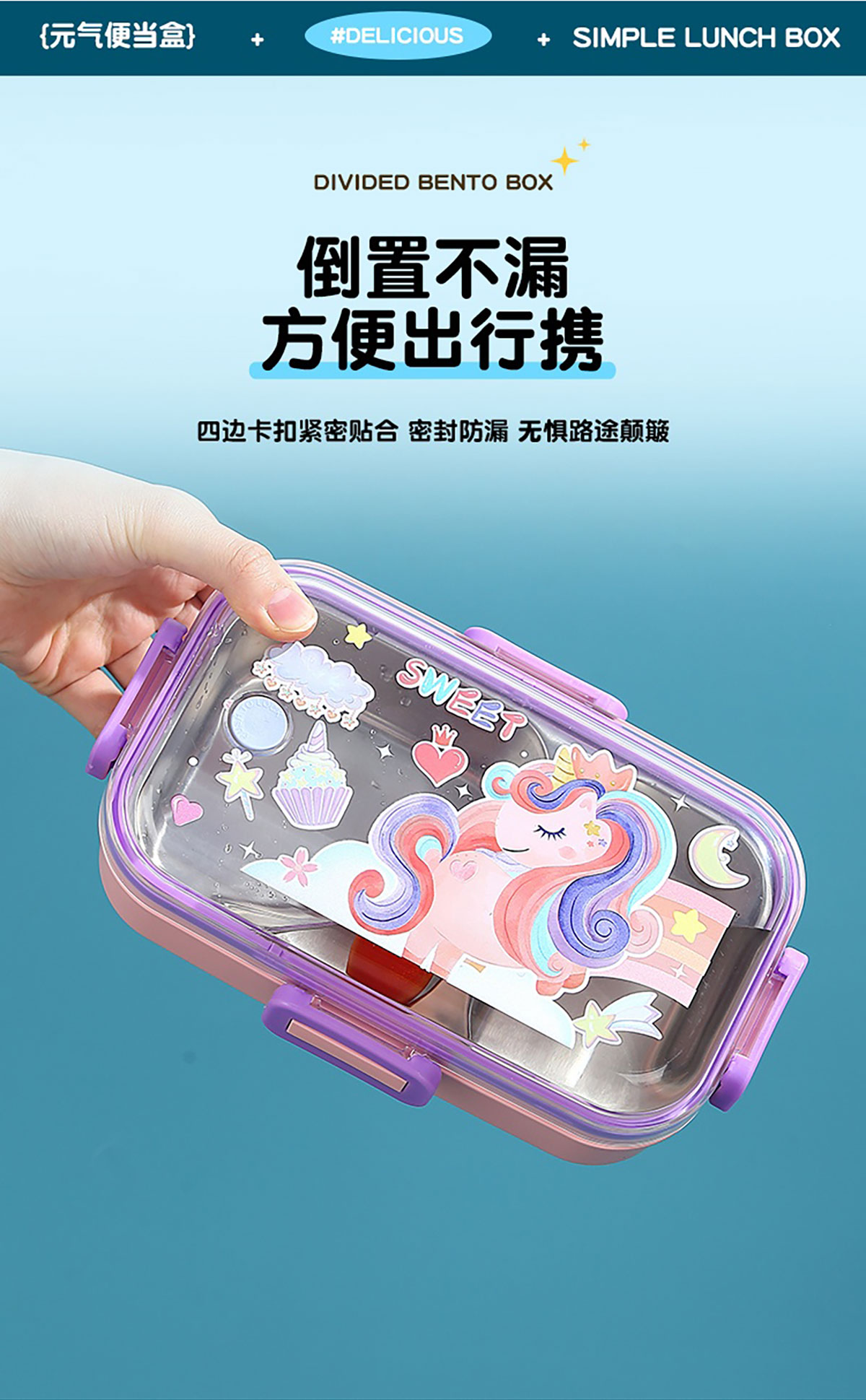 700ml童趣密封不銹鋼餐盒(單格+PP碗150ml/2格+沙拉碗80ml/2格+不銹鋼碗100ml)