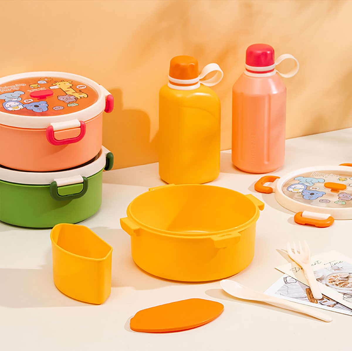 尚趣圓形單層飯盒(1000ml)(含格子)/+圓形/方形運(yùn)動水壺(500ml)