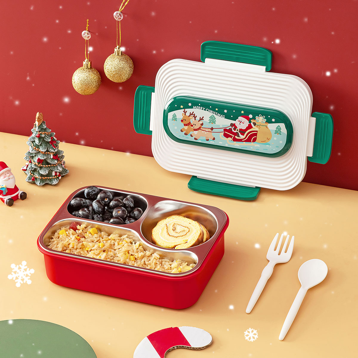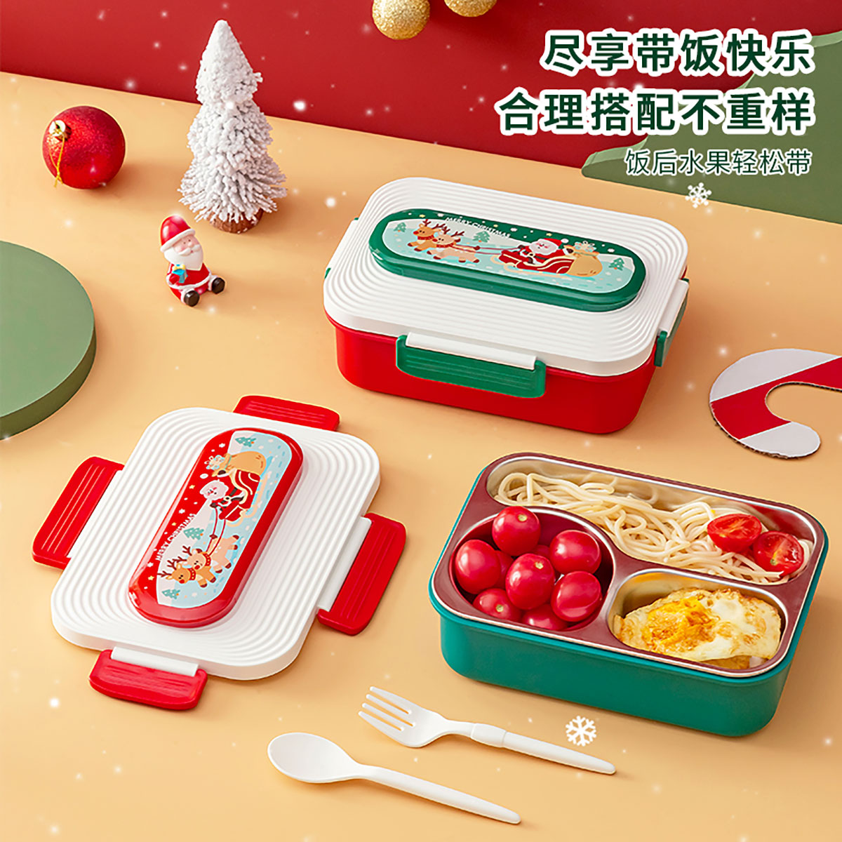 圣誕三格不銹鋼飯盒