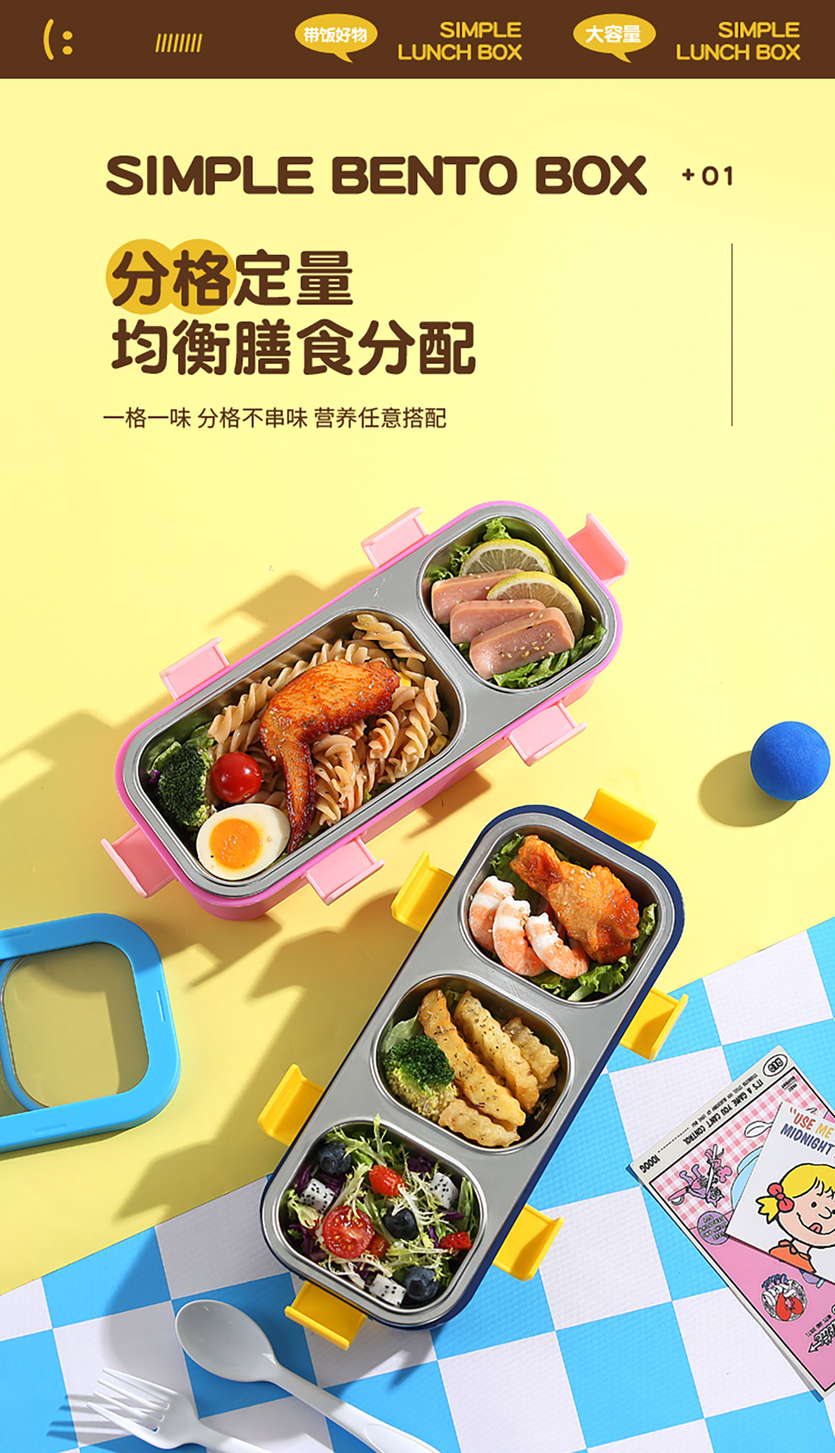 Size: 275*119*73mm(二格600ml/三格500ml)