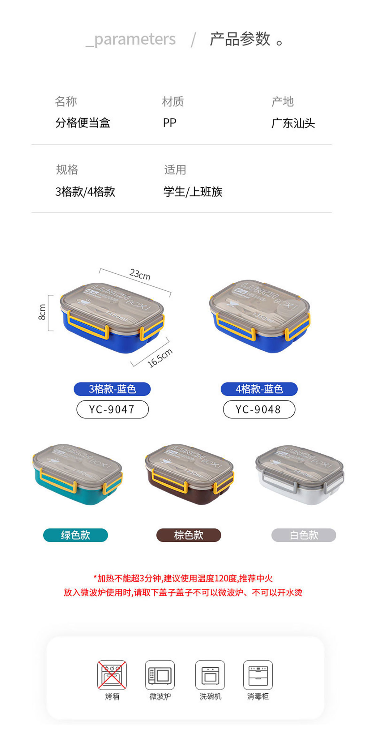 Size: YC-9047(三分格):230*165*80mm/1450ml